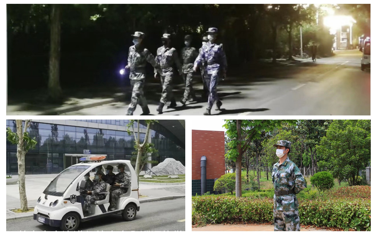 航空鹰击连每天安排20人执勤。白天,他们开着巡逻车在校园巡逻,前往核酸检测点维持秩序;晚上,他们又组成夜间巡逻队,每班三人加入到校园巡查队伍中。