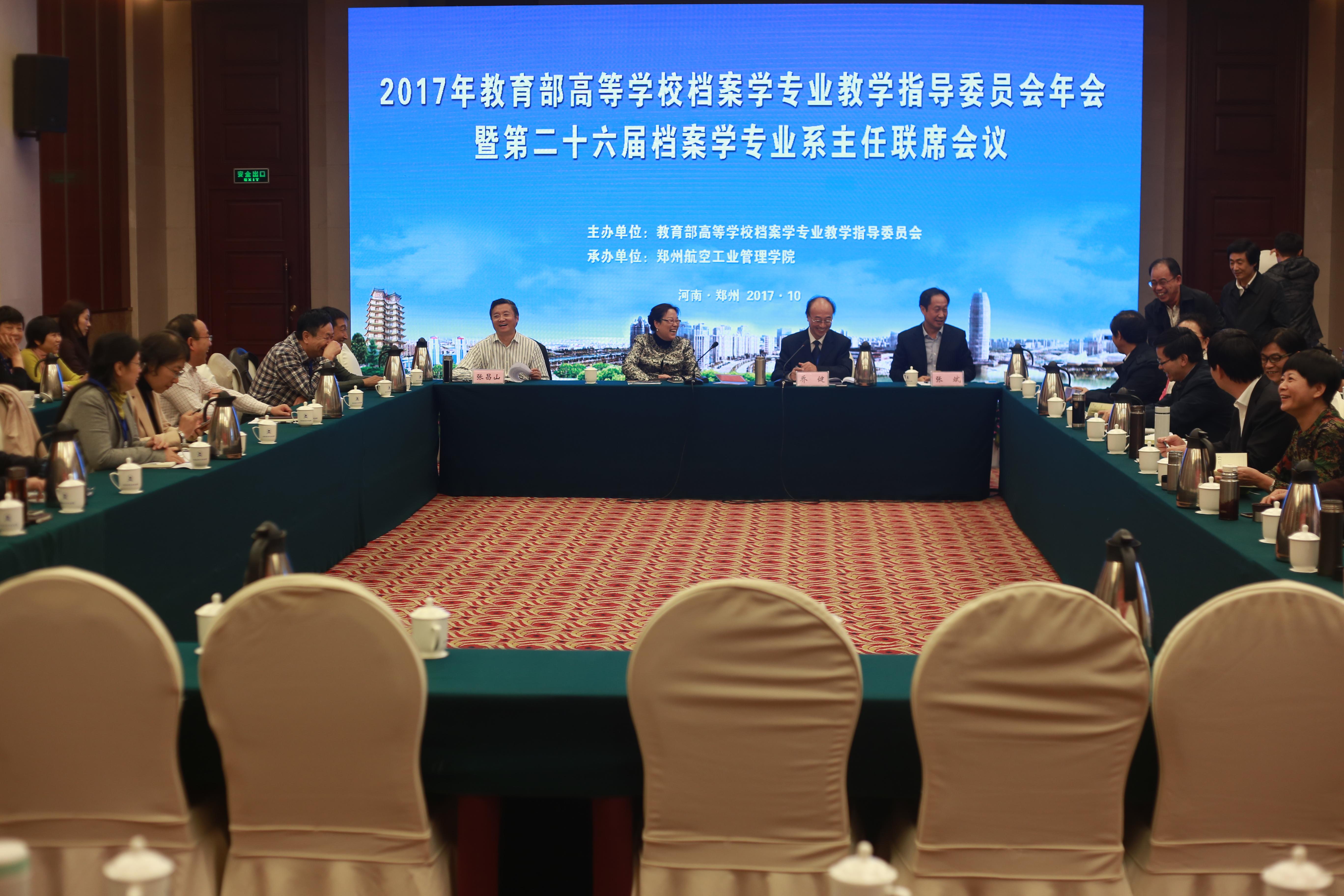 2017年10月29日至31日,由郑州航空工业管理学院承办的2017年教育部高等学校档案学专业教学指导委员会年会暨第26届档案学专业系主任联席会议在郑州召开,会议主题为“新技术背景下档案学专业课程教学”。