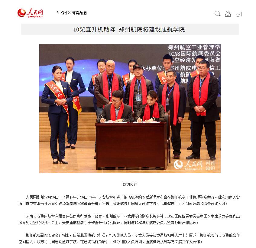 12月26日,人民网、大豫网、凤凰网、网易、民航资源网等报道我校与天安通航合作共建通航学院的消息。