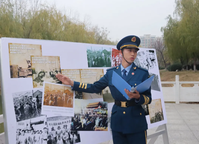 活动中,国旗班成员安乐宁介绍了“一二九运动”的历史背景、活动过程、历史意义及其影响,并带领参加活动的同学们回顾了85年前那段峥嵘岁月。