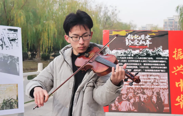 12月9日,我校团委在东校区沁湖东侧举办“不忘初心跟党走 青春奋进正当时”主题团日活动,纪念“一二九”运动85周年,弘扬爱国主义精神。