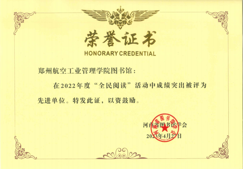 4月27日,河南省图书馆学会十届二次全体理事会召开,我校图书馆被授予2021、2022年度“全民阅读”先进单位。