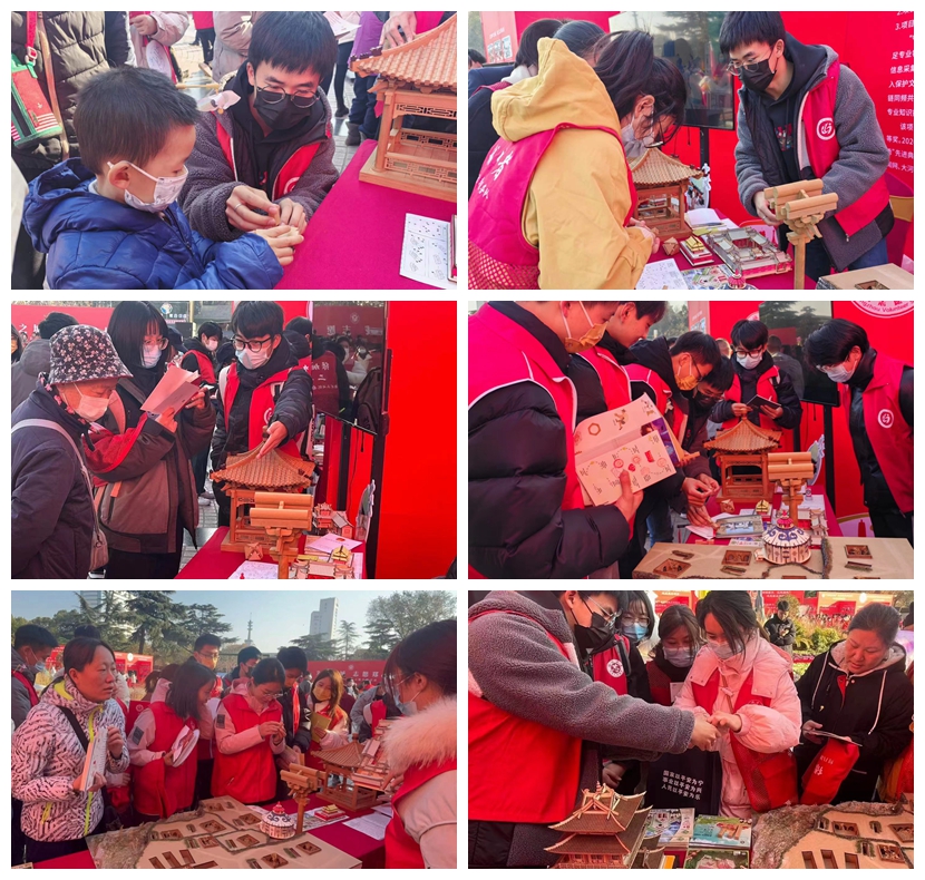 活动现场,我校志愿者团队成员以“以古建为媒,讲好中国故事”为主题,为市民普及古建筑知识、开展问答互动,展示亲手制作的古建筑构建、特色古建筑模型等,通过带领市民巧解鲁班锁、搭建古建筑拼图等通俗易懂的形式倡导广大市民保护古建筑、留住历史文脉。