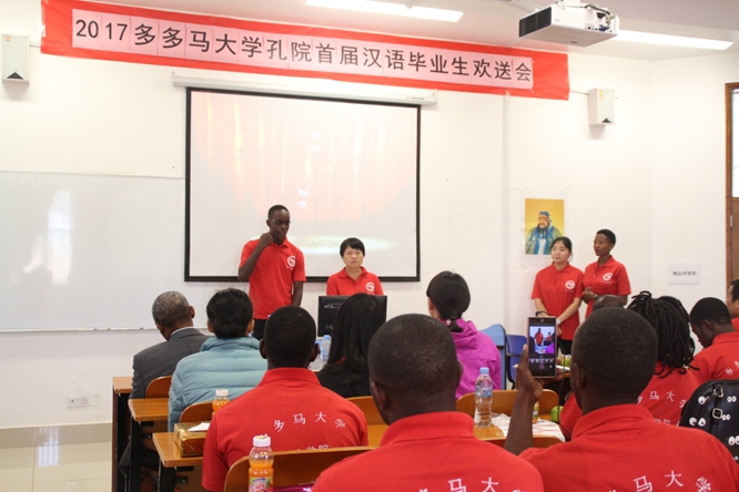 6月23日,坦桑尼亚多多马大学孔子学院举行首届汉语毕业生欢送会。多多马大学副校长穆索菲(Prof. Msofi),教育学院院长康巴(Prof. Konba),孔院中方院长王晓卉以及孔院汉语教师,全体汉语专业、汉语辅修专业毕业生参加欢送会。