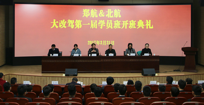 3月31日,郑航&北航大改驾第一届学员班开班典礼在东校区图书馆第二报告厅举行。副院长贺金社出席典礼,北航飞行学院院长助理及北航青岛飞行培训基地总经理阎浩、民航学院院长石英、民航学院党总支书记徐保山、会计学院院长王秀芬参加典礼。典礼由教务处处长颜敏主持。