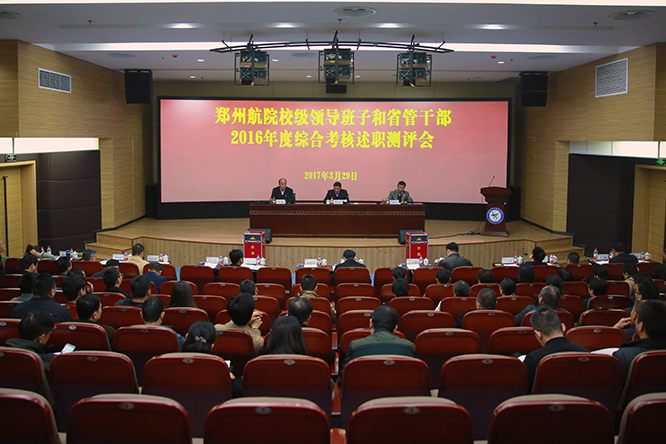 3月29日,我校在图书馆第二报告厅召开校级领导班子和领导干部2016年度综合考核述职测评大会,以省高工委专职委员陈垠亭为组长的省委第二考核组一行7人出席会议。学校领导班子成员、党委委员、纪委委员、中层正职、省政协委员、省辖市以上民主党派负责人、教师代表、学生代表等参加了会议。会议由党委书记梁晓夏主持。