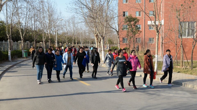 参与活动的女教工一路欢声笑语、健步如飞,神采飞扬。“虽春寒料峭,但我们热情高涨,‘徒步行’活动让美丽的校园里再增添一道靓丽的风景线。”参加徒步活动的一位女教工说。