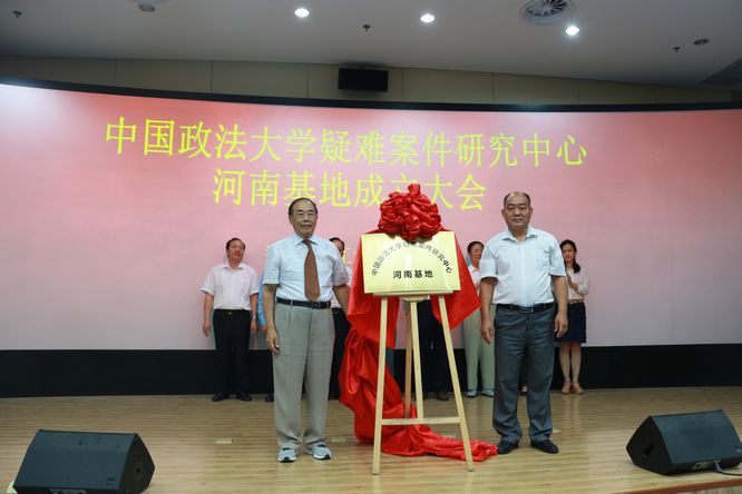 会上,中国政法大学疑难案件研究中心主任郭成伟、法学院院长邢培泉签订《中国政法大学疑难案件研究中心河南基地合作协议书》并为河南基地揭牌。