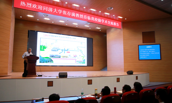 4月28日,应土木建筑工程学院邀请,新能源国际知名专家、同济大学博士生导师张存满教授在图书馆第一报告厅做了一场精彩的学术讲座,副院长张锐出席讲座现场。