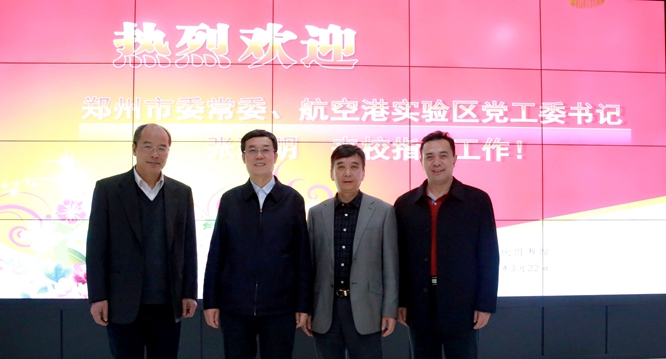 3月22日,郑州市委常委、郑州航空港区党工委书记张延明莅临我校,就推进航空港区与我校合作事宜商谈。党委书记梁晓夏、院长李勇、副院长张锐等与来宾座谈。