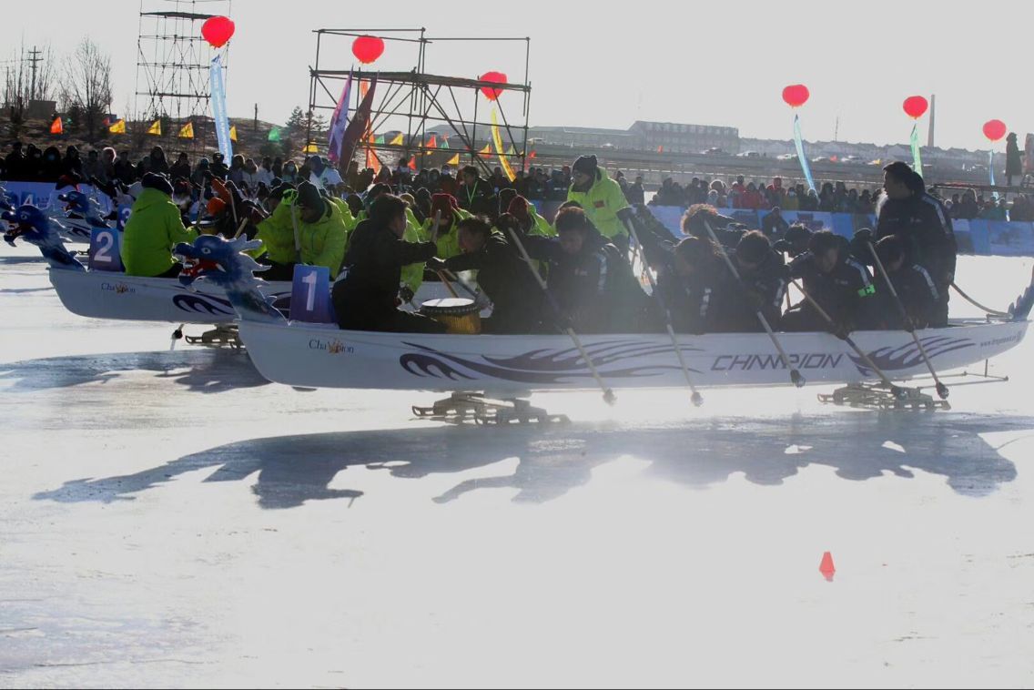 比赛恰逢“三九”降温,尽管户外温度低于零下25摄氏度,但是对于参与冰上龙舟赛的参赛队员来说,却是展示“龙舟冰上秀”风采的绝佳机会。