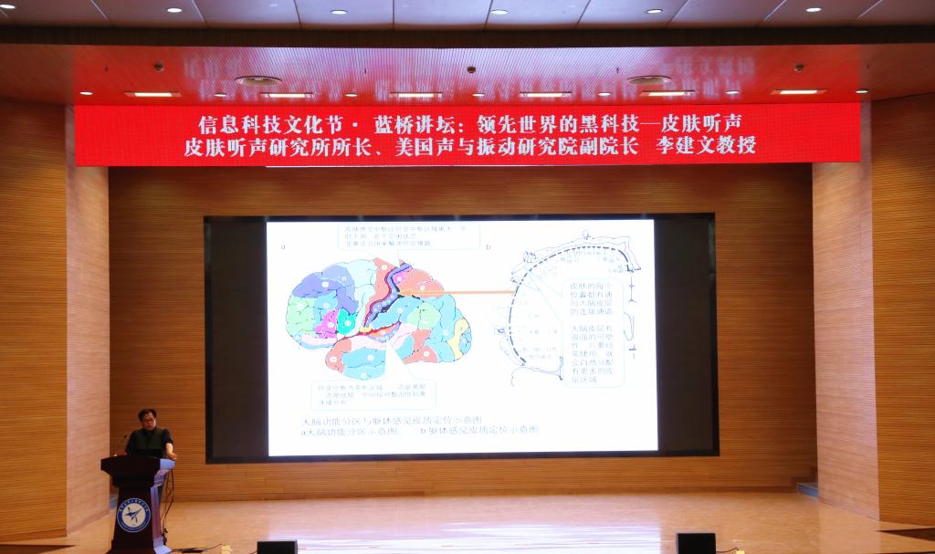 近日,陕西科技大学皮肤听声研究所所长、美国声与振动研究院副院长李建文教授,在图书馆第一报告厅为我校师生带来了一场题为《用皮肤听声音》的学术报告。信息科学学院、计算机学院、电子通信工程学院400余名师生参加。