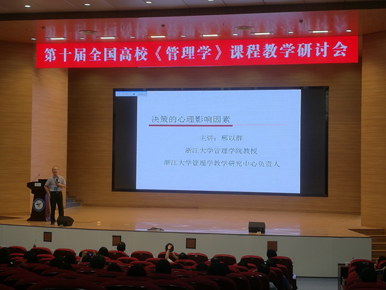 本次研讨会由我校工商管理学院和浙江大学管理学院管理学教研中心共同举办,会议主题为本科《管理学》的“决策及其过程”教学研讨。会议围绕主题,以主题报告、主题交流、教学示范和企业参观调研等环节进行。