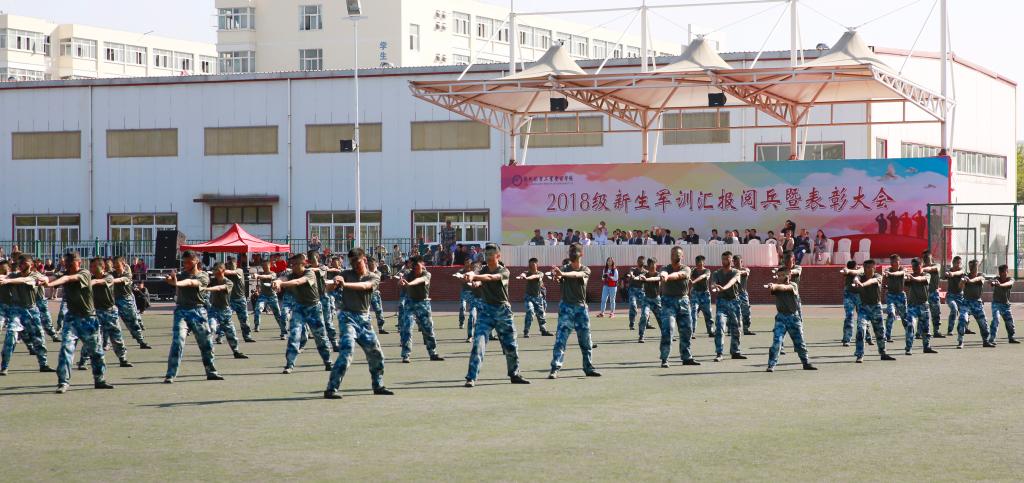 各教学院(部)及有关职能部门负责人在主席台就坐,并观看了军训汇报阅兵。
