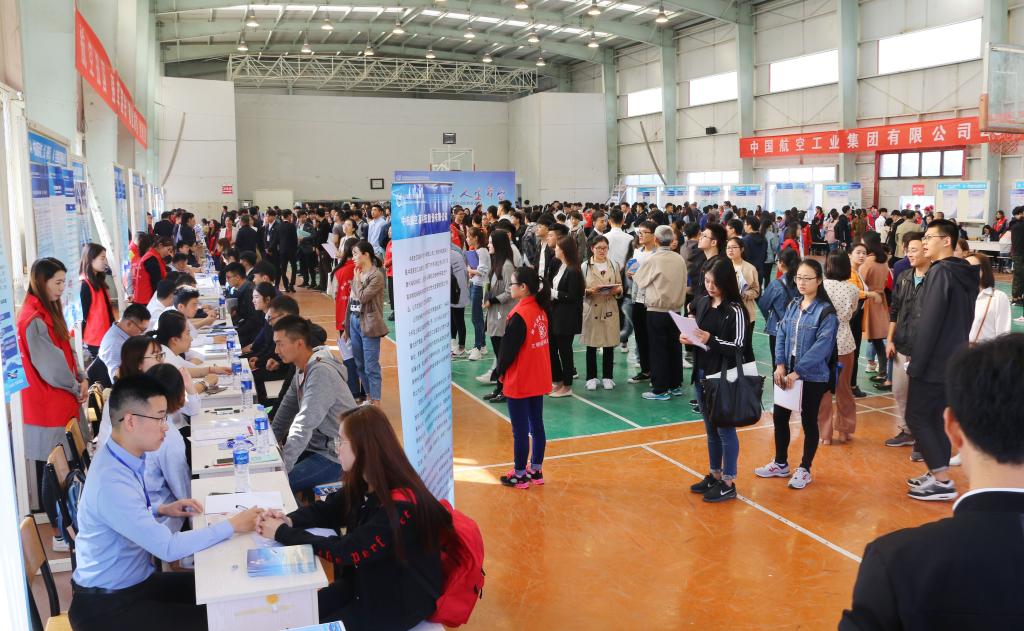 10月12日,中国航空工业集团有限公司2019校园招聘会在东校区训练馆举办。