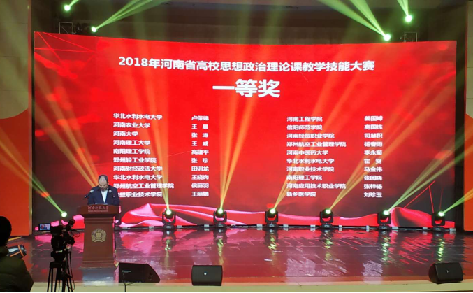 近日,备受全省高校关注的2018河南省高校思政课教学技能大赛决赛落下帷幕。我校思政部教师侯丽羽、杨春雨双双进入决赛,并荣获一等奖;同时,我校荣获大赛“优秀组织奖”。