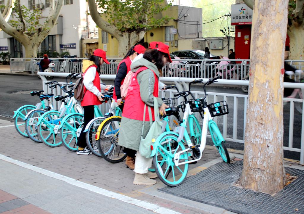 在省委社区,志愿者兵分两组。一组前往街道进行清扫活动,将街道旁乱摆乱放的共享单车进行了整理。另外一组围绕社区街道进行走访和民情了解。省委社区党总支副书记秦志军细心地为志愿者讲解沿途商户和企业的故事,将改革开放40年来社区街道的变化再现志愿者眼前。