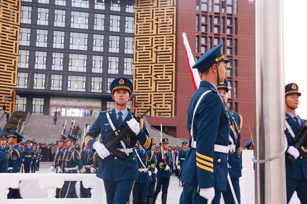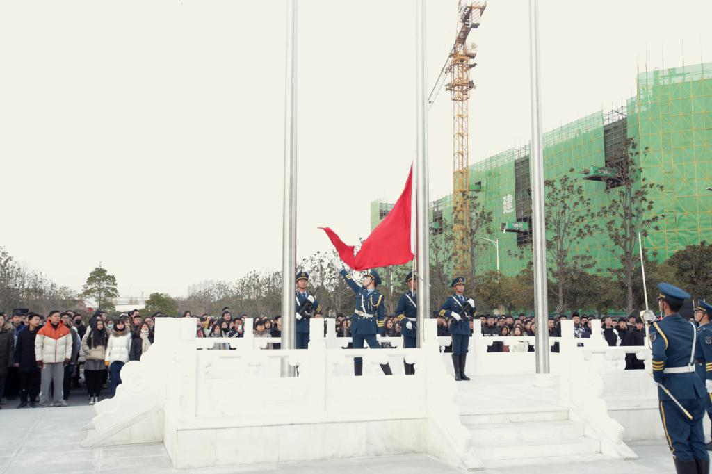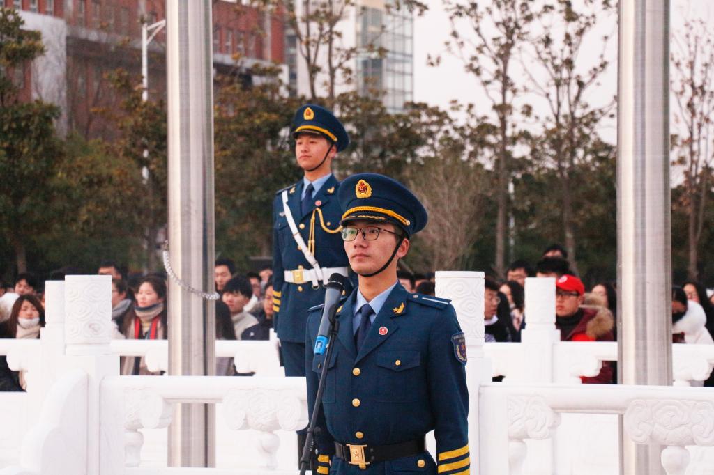 据悉,此次迎新年升国旗活动是我校东校区新的国旗广场启用后举行的首次升旗仪式,国旗护卫队也是由36人扩编为57人后首次执行的升旗任务。