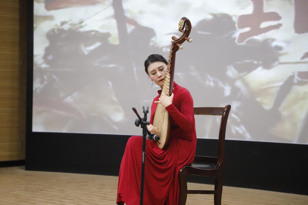 音乐会也特别推出由我校教师邓思佳演奏的中国传统器乐作品中大型武曲的代表作——琵琶曲《十面埋伏》,演奏势如贯珠散落,急如暴雨骤降,险如霹雳横空,将剑拔弩张的战场氛围和得胜之师的威武雄壮表现得入木三分。