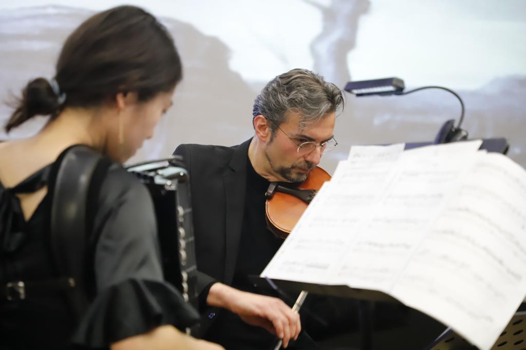 下半场以西里尔·格拉克先生的小提琴独奏《回归》开场,乐曲舒缓凝重、婉转悠扬,犹如平静水面下的暗涌,充满了绵延的柔情和无尽的忧伤。《华丽探戈》体现了探戈作为一项集音乐、舞蹈、诗歌于一体的综合艺术,其热情奔放、绝世风华与人之灵魂自由的高度契合。