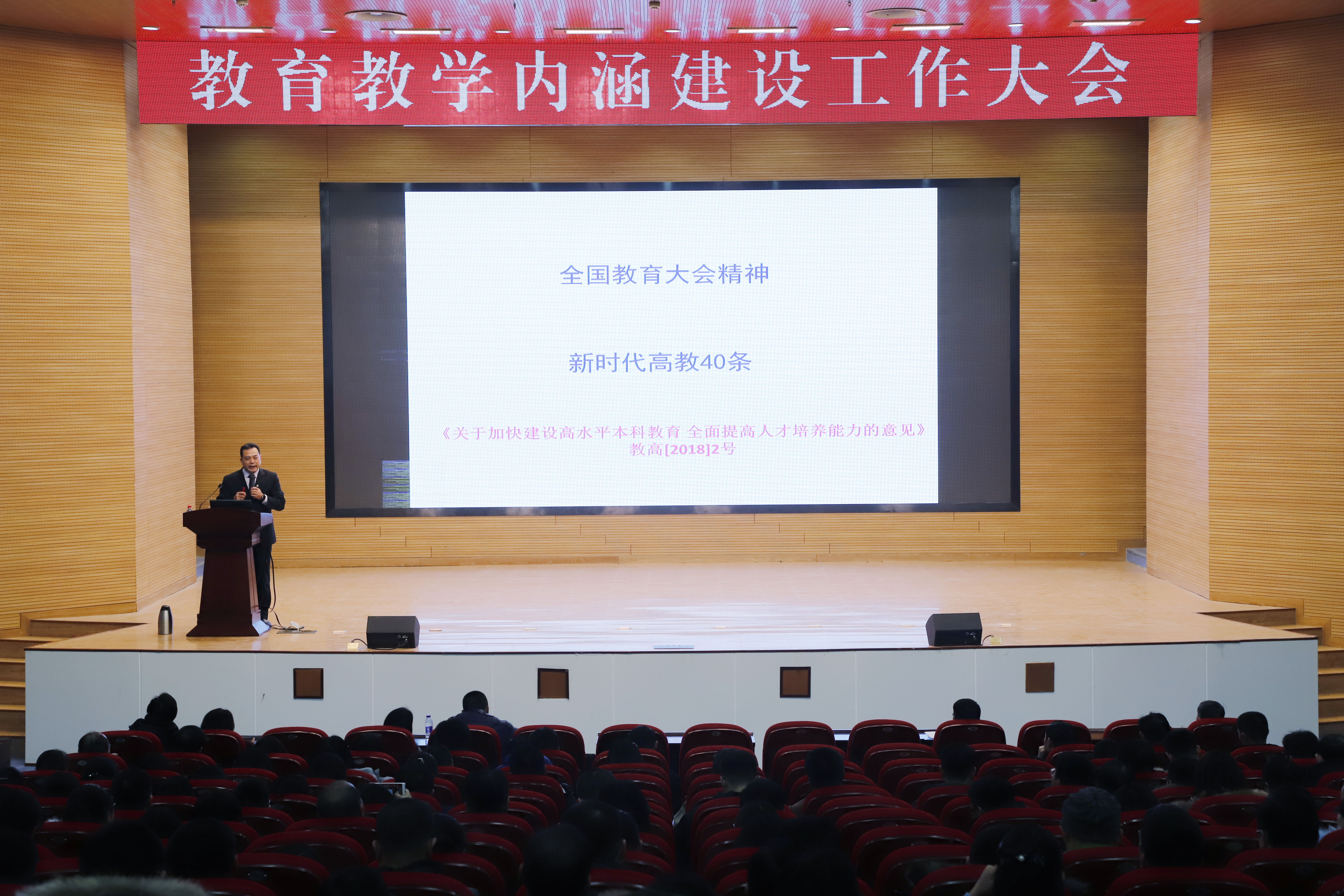 根据全国教育大会精神和“新时代高教40条”内涵,我校将实施“课程质量提升计划”,实现“121”目标,力争打造10门国家一流课程、20门省一流课程、100门校一流课程的建设目标;将实施“教改能力提升计划”,实现“152”目标,力争获批1项国家级教改项目、50项省部级教改项目、200项校级教改项目;将实施“教研水平提升计划”,实现“518”目标,制定对提高教学水平和教育质量、实现培养目标产生明显效果的教育教学方案,力争完成50篇高影响力教研论文、100项本科生高影响力学术论文、80项学生A级学科竞赛国家级获奖的阶段目标;将实施“教学成果提升计划”,实现“133”目标,在2022年之前实现我校所有工科专业申报教育部工程教育专业认证,其他专业全面准备国际、行业专业认证,完成1项国家教学成果奖、3项省教学成果特等奖、3个专业通过教育部专业认证等目标。张锐希望,全体教师要聚精会神建好课程,专心致志指导学生,凝心聚力改革创新,全神贯注培育成果,殚精竭虑谋划发展,以钉钉子的精神抓好落实,为我校科研实力大突破、教学质量新腾飞贡献力量,为我校实现更名大学、获得博士学位授权努力奋斗!