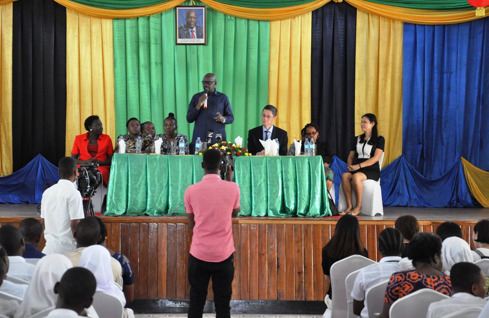 近日,坦桑尼亚中学项目教师及志愿者表彰大会在达累斯萨拉姆扎娜克中学举行。坦桑尼亚教育科学技术部副部长Hon. William Tate Ole Nasha、坦桑尼亚教育科学技术部副常务秘书长Dr. Ave Maria Semakafu、中国驻坦桑尼亚大使馆文化参赞高炜、坦桑尼亚中学项目协调员郑雪宇出席表彰大会。