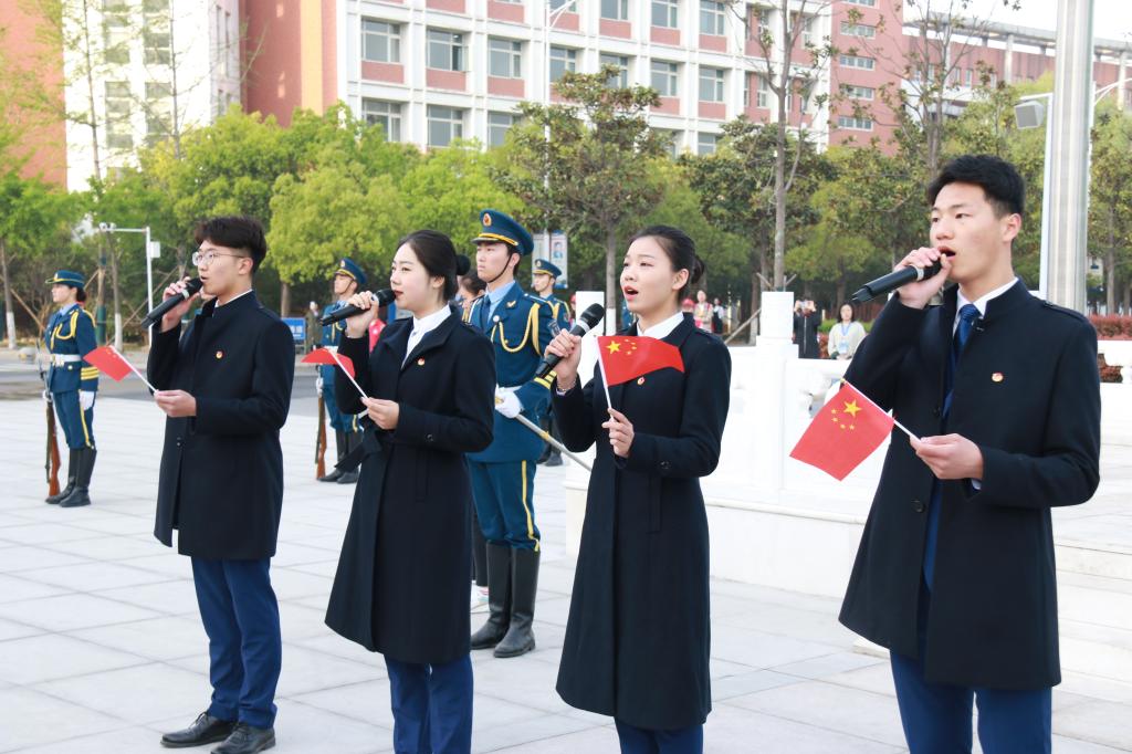 4月15日早7点,民航学院在国旗广场举行“新时代 新青年 新征程”主题升旗仪式。1300余名师生参加升旗仪式。