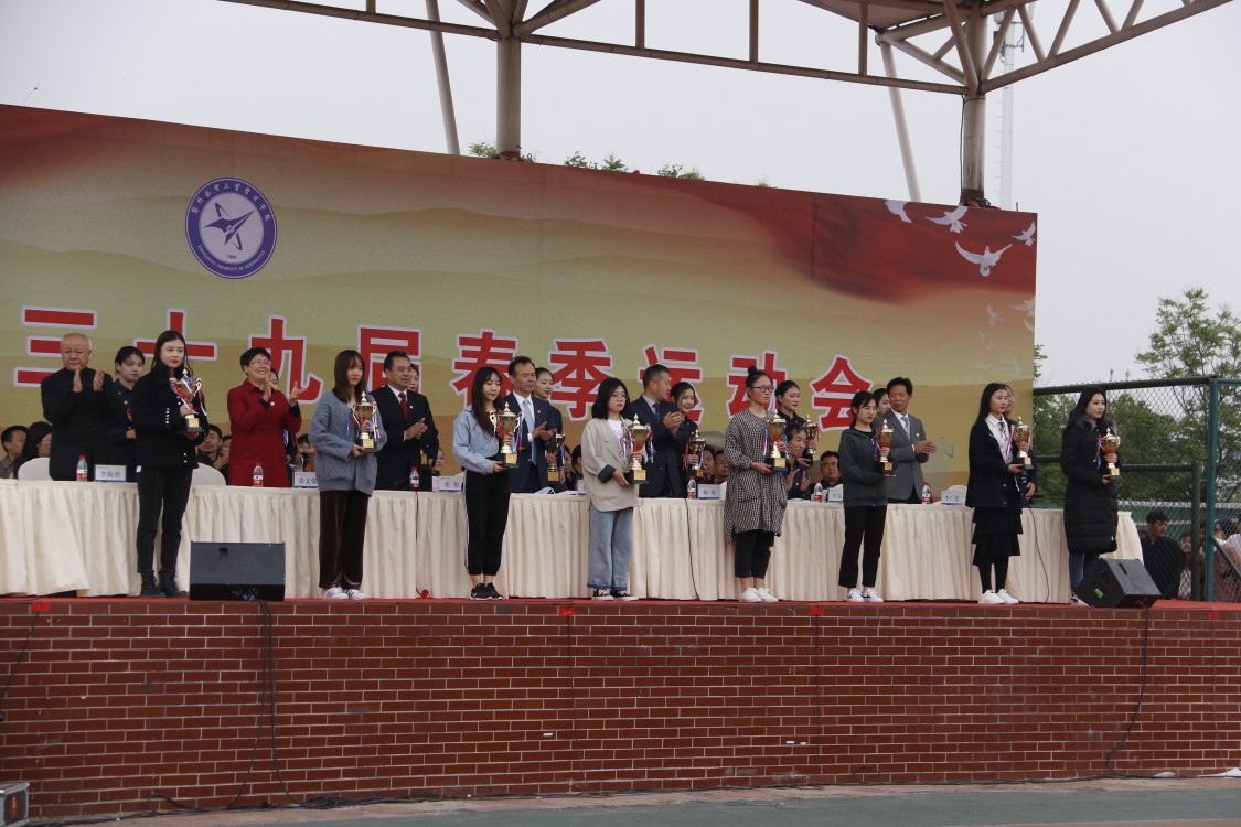 缤纷四月,活力激荡;郑航健儿,青春飞扬。4月19日下午,经过两天紧张、激烈、有序的比赛,我校第三十九届春季运动会在东校区运动场落下帷幕。在校校领导付强、杨培、张锐、申金山、张文强、李广慧、李陶然出席闭幕式并向获奖单位和个人颁奖,各教学院(部)、行政职能部门主要负责人在主席台就座。闭幕式由党政办公室主任李广锋主持。
