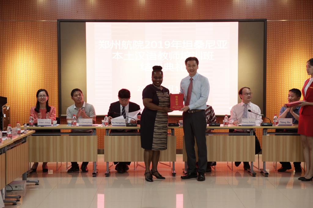 艾薇·玛丽亚·萨玛卡芙代表坦桑教育科技部向19名培训班学员的顺利结业表示热烈祝贺并送上真挚祝愿,向辛勤从事留学生教育的老师和管理工作者表示感谢,向河南省政府以及郑州航院表示诚挚的感谢与祝福,她深情回顾了中坦两国间深厚的友谊,并对未来坦桑尼亚的汉语教育发展提出美好愿景。