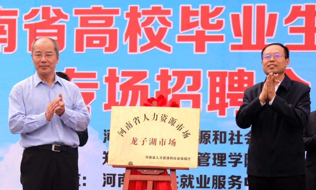 上午9点半,院长李勇、河南省人力资源和社会保障厅副厅长李甄代表双方共同为河南省人力资源市场龙子湖市场揭牌。