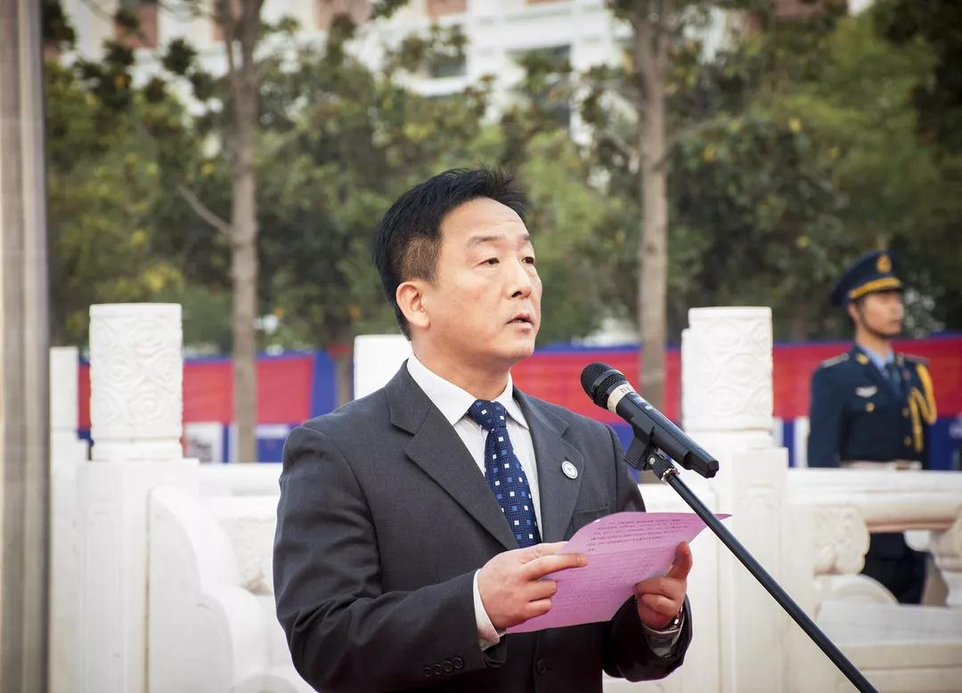 党委副书记石培哲在升旗仪式上讲话。他说:“七十年前,伴随着天安门广场缓缓升起的五星红旗,与共和国同龄的郑州航院诞生了。从此郑航便始终与祖国、与人民同呼吸共命运。”他发出倡议,我们要向伟大的祖国致敬,是祖国铸就了郑航人竭诚奉献的爱国品质和航空报国的使命担当;要向广大校友致敬,是他们在各行各业建功立业,为母校增光添彩,共同雕刻出坚守向上的郑航人群像;要向一代代教职工致敬,他们心向学校发展、心系学生成才,把心血和汗水都抛洒在郑航这片热土,做出了不可磨灭的贡献;要向社会各界致敬,郑航的每一次发展都离不开各级领导、社会各界的支持与帮助,创业维艰的过去离不开,凝心聚力的今天离不开,攻坚克难的未来更离不开!他号召全校师生要不忘初心、牢记使命,意气风发,斗志昂扬,为早日把我校建成高水平特色骨干大学再谱新章!