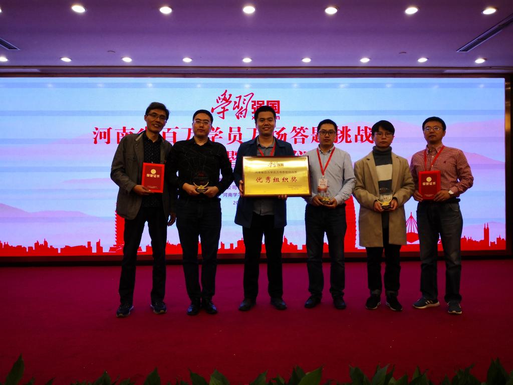 10月31日,“学习强国”河南省百万学员万场答题挑战赛总决赛暨颁奖仪式举行,来自全省各地100余名“学习达人”展开了一场激烈的“知识对决”。我校发展规划处刘晗、文法学院计宁代表学校和省委高校工委参加决赛,并分别荣获三等奖和优秀奖。