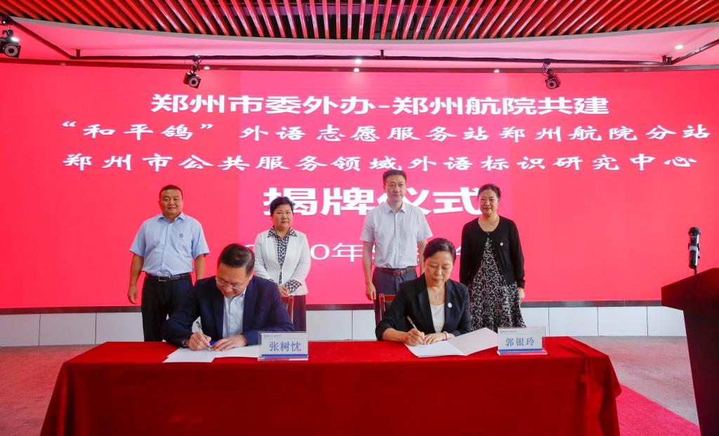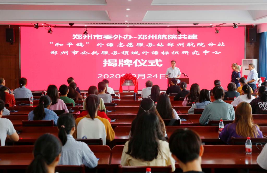 9月24日,我校与郑州市委外办校地合作签约揭牌仪式举行,标志着“和平鸽”外语志愿者服务站郑州航院分站和郑州市公共服务领域外语标识研究中心正式启动建设。