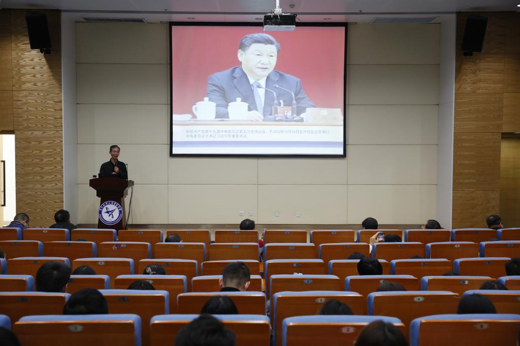当日,院长李勇为航空工程学院师生宣讲党的十九届五中全会精神。李勇指出,党的十九届五中全会,是党在我国全面建成小康社会的第一个百年奋斗目标即将如期实现、全面建设社会主义现代化国家新征程即将开启的重要历史背景下,召开的一次十分重要的会议,具有划时代意义。他详细阐述了党的十九届五中全会的重要意义、深刻解读了全会审议通过的《中共中央关于制定国民经济和社会发展第十四个五年规划和二〇三五年远景目标的建议》。