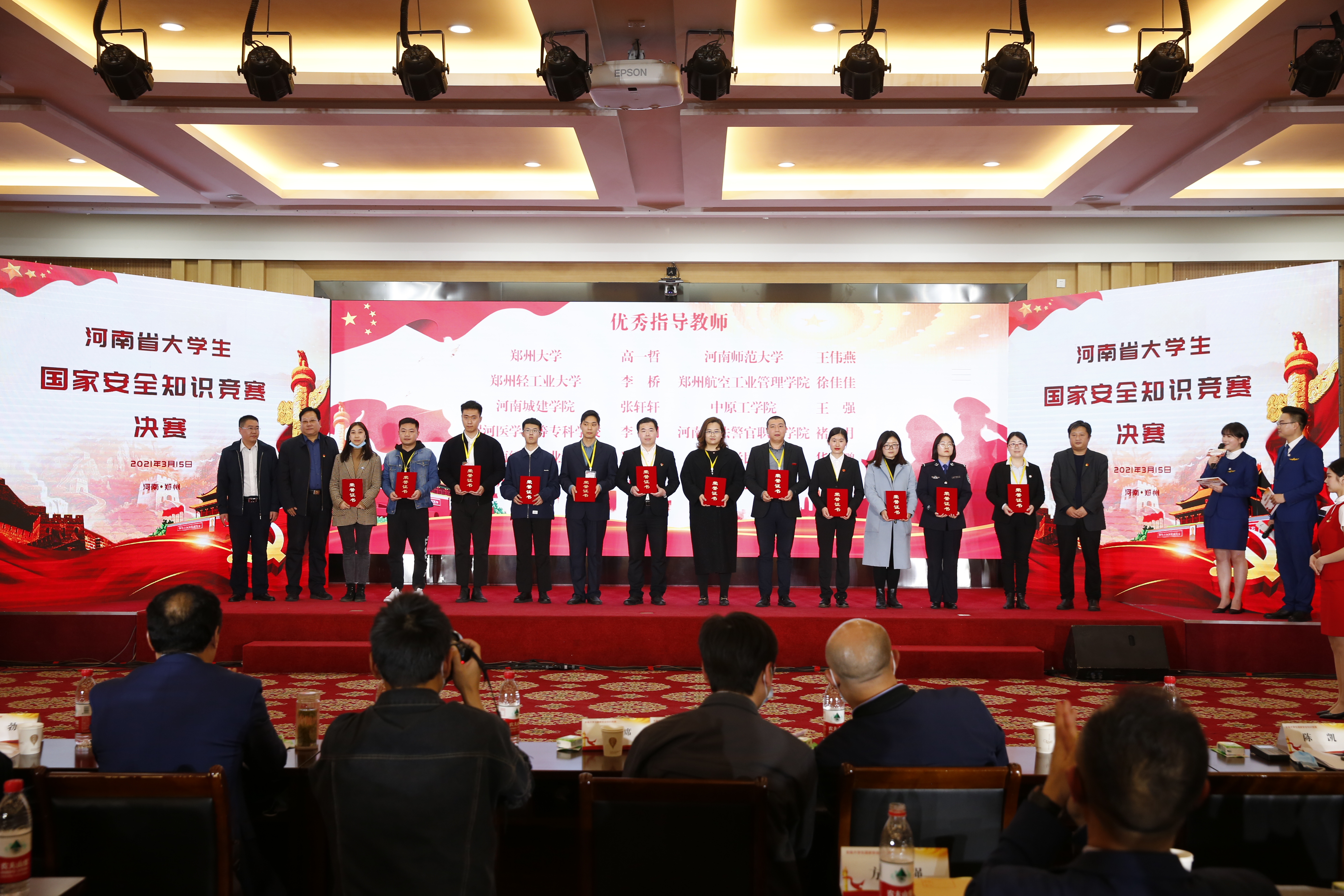 总决赛上,在经过“必答与抢答”“安全公开课”“终极PK”三个环节的比拼后,郑州大学代表队荣获一等奖,郑州轻工业大学代表队、河南城建学院代表队获得二等奖,河南师范大学代表队、郑州航空工业管理学院代表队、河南司法警官职业学院代表队获得三等奖。大赛还颁布了优秀指导教师奖以及优秀组织奖。