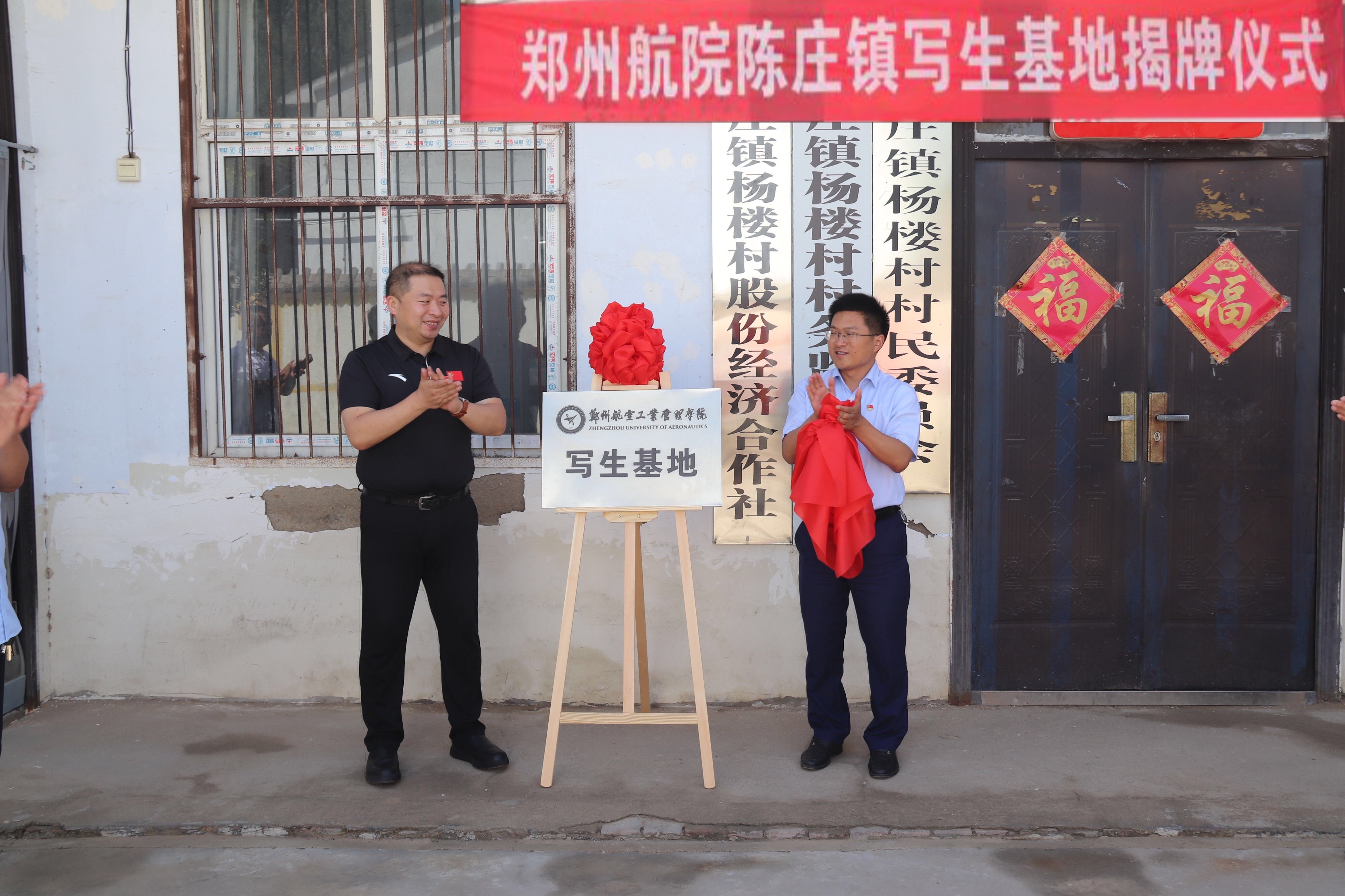 李捷和陈庄镇镇长李鹏宇共同为写生基地揭牌。写生基地的建立是我校发挥教育资源助力乡村振兴的重要举措,同时也为郑航学子提供了一个良好的校外实践教学平台。