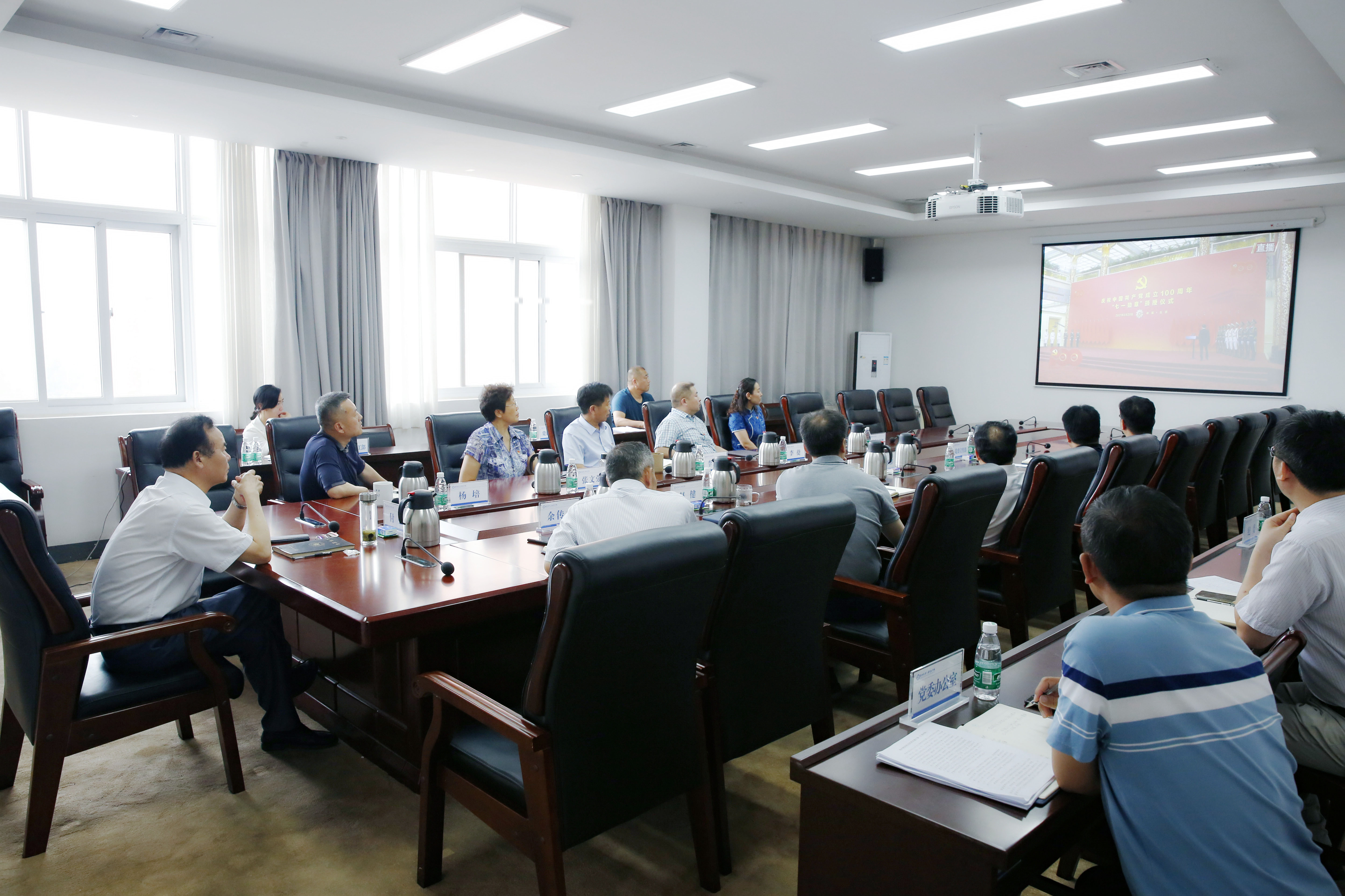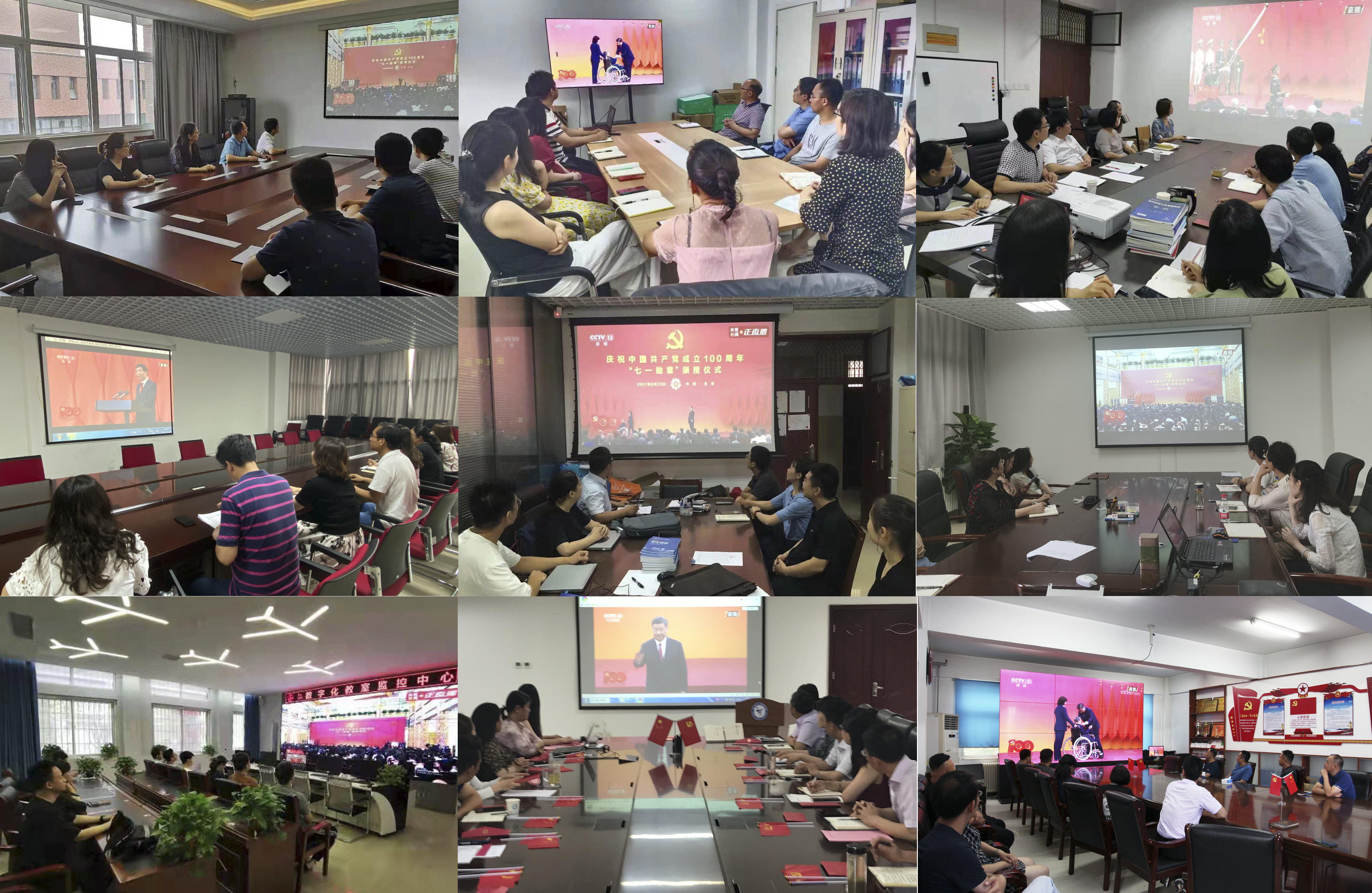 上午10时,校领导付强、杨培、余传杰、张文强、赵健、李广慧、王继东、李捷,以及党办、校办、组织部、宣传部、统战部、纪委、人事处、学生处主要负责同志在综合楼427会议室观看“七一勋章”颁授仪式现场直播。