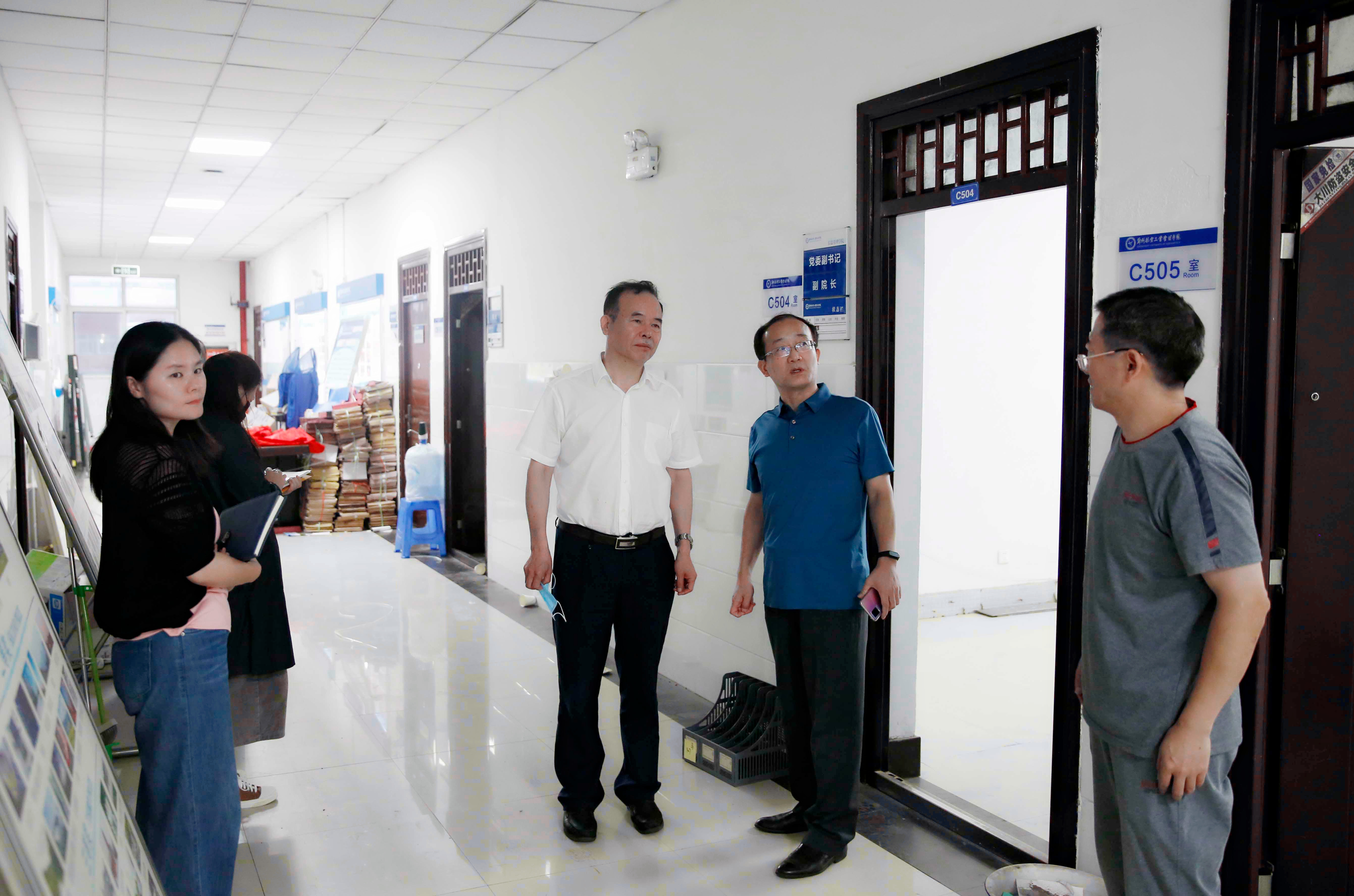 8月27日、30日、31日,校党委书记付强,纪委书记、监察专员张文强深入各教学单位,检查指导学院搬迁和新学期教学科研等各项工作推进情况。