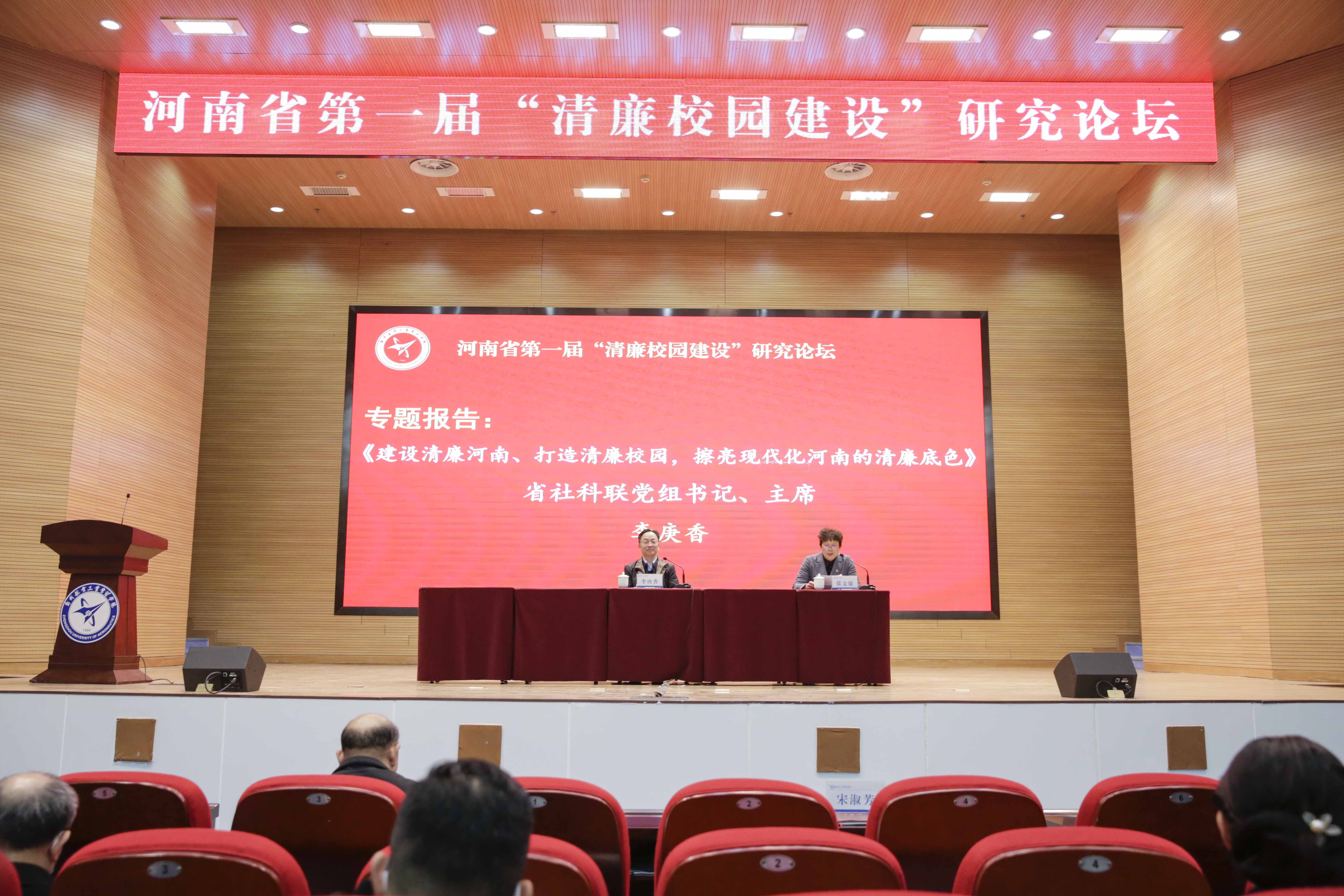 12月23日,河南省首届“清廉校园建设”郑航论坛在我校举办。校党委书记付强出席论坛开幕式并致辞,开幕式由校纪委书记、监察专员张文强主持。