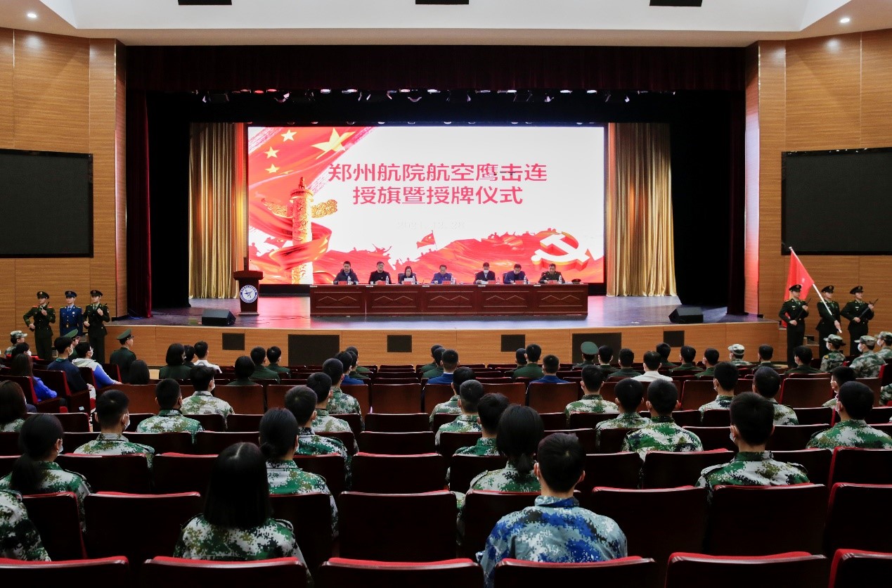 仪式上,相关部门负责人宣读了郑州航院“航空鹰击连”第一任连主官任职文件,并为“航空鹰击连”授连牌与连旗。