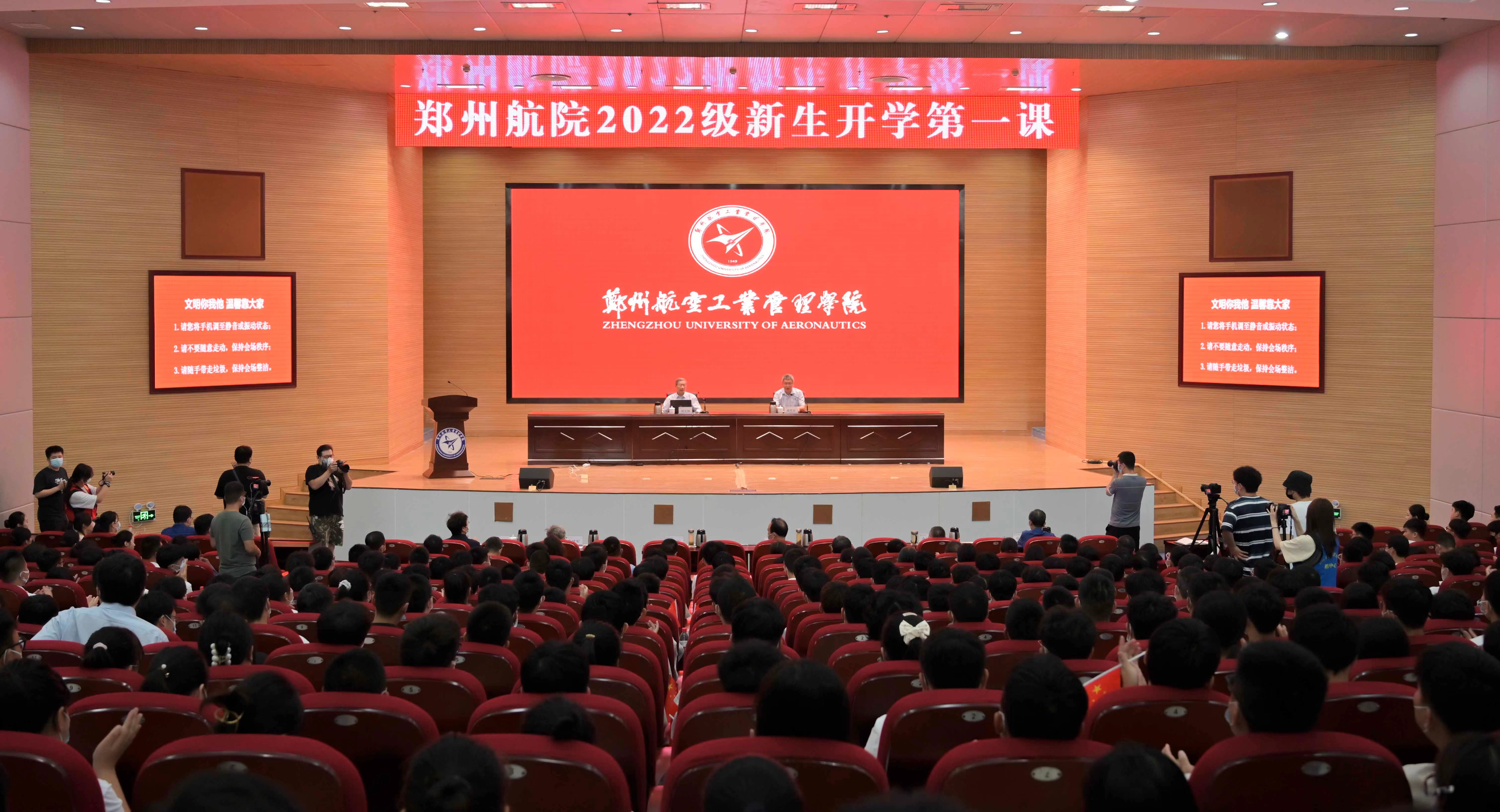 校长刘代军在主持“开学第一课”时,向2022级新生提出三点希望:一是希望同学们厚植家国情怀,强化使命担当。自觉把爱国情、强国志、报国行融入实现中华民族伟大复兴的奋斗之中,不负时代重托,不负青春韶华,书写无愧于国家、无愧于人民的青春答卷;二是希望同学们钻研高深学问,练就过硬本领。梦想从学习开始,事业靠本领成就。唯有在勤奋学习中练就过硬本领,在创新创业中增长智慧才干,在艰苦奋斗中锤炼意志品质,既扎实打牢基础知识又及时更新知识,既刻苦钻研理论又积极掌握技能,不断提高与时代发展和事业要求相适应的素质和能力,才能成为可堪大用、能担重任的栋梁之材;三是希望同学们矢志强校追求,共谱绚丽篇章。学校在“十四五”事业发展规划中明确了实现更名大学的目标。作为郑航的一份子,郑航学子是学校发展的见证者,更是建设者、推动者,希望同学们以主人翁的姿态增加责任感和使命感,用自己的实际行动为学校的发展贡献力量。