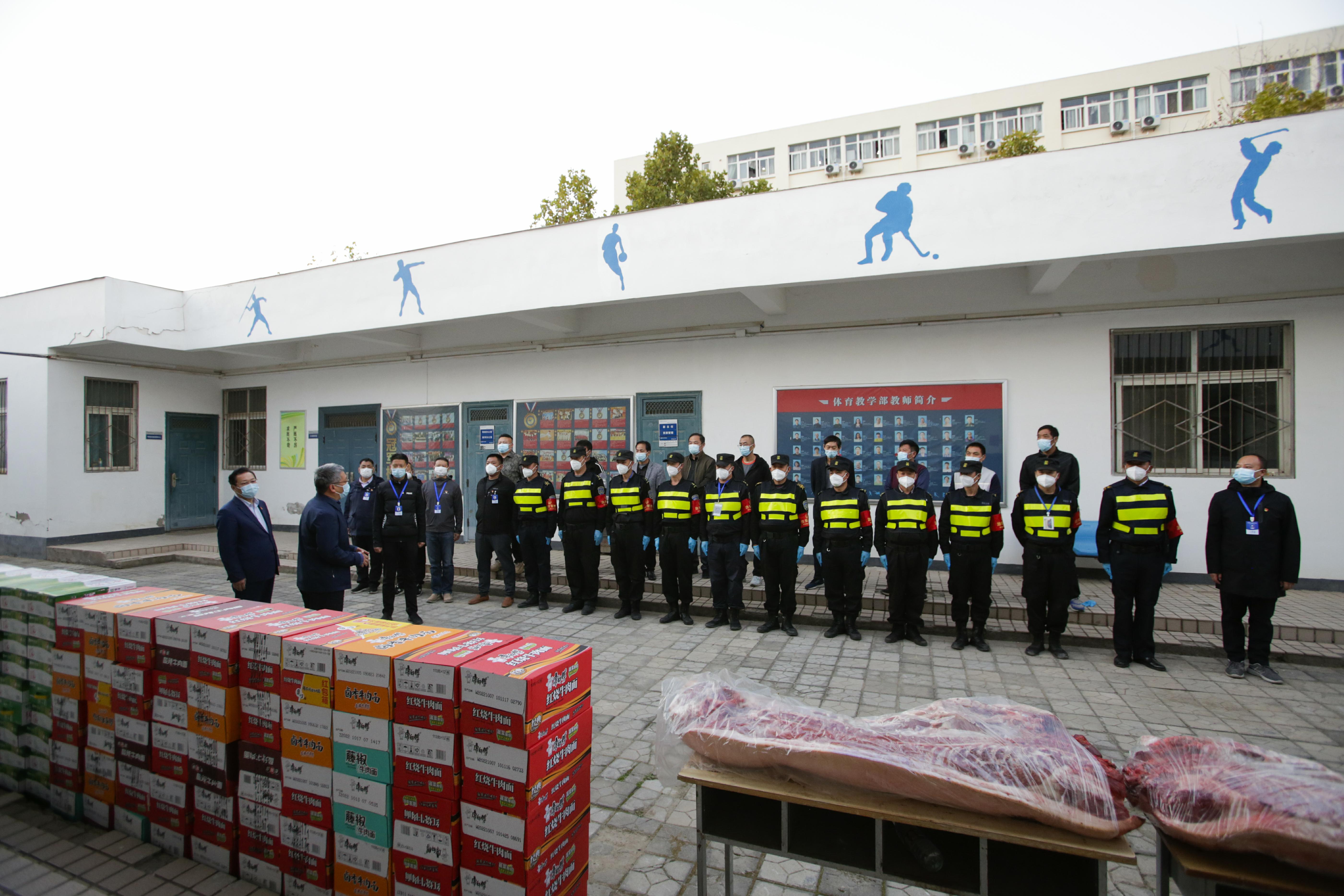 刘代军、王继东一行仔细查看校园大门管控、校区安全稳定各项措施落实落细情况,详细了解值班值守和应急备勤工作人员日常生活状况,看望慰问24小时不间断轮岗执勤一线安保人员;并送去生活慰问物资,对一线工作人员面对疫情不畏惧、不退缩,时刻坚守岗位、日夜奋战,为全校师生健康安全和校园安全稳定辛勤付出表示由衷感谢。