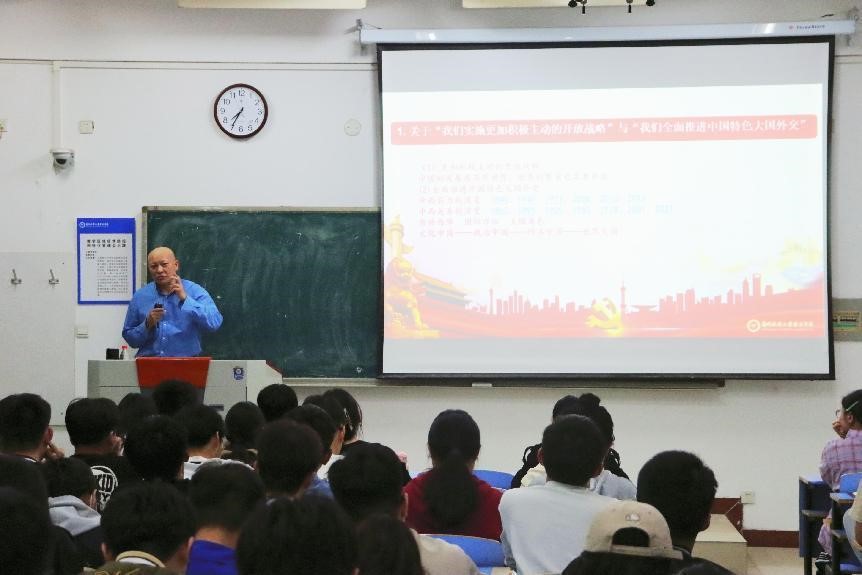 李伟涛以《中国式现代化的外交方案与实践》为题,从“把握世界大势的方法论”“中国方案:构建人类命运共同体”“中国实践:积极展现大国担当”三个方面进行宣讲,对报告提出的新表述、新概括、新论断做了重点阐释。