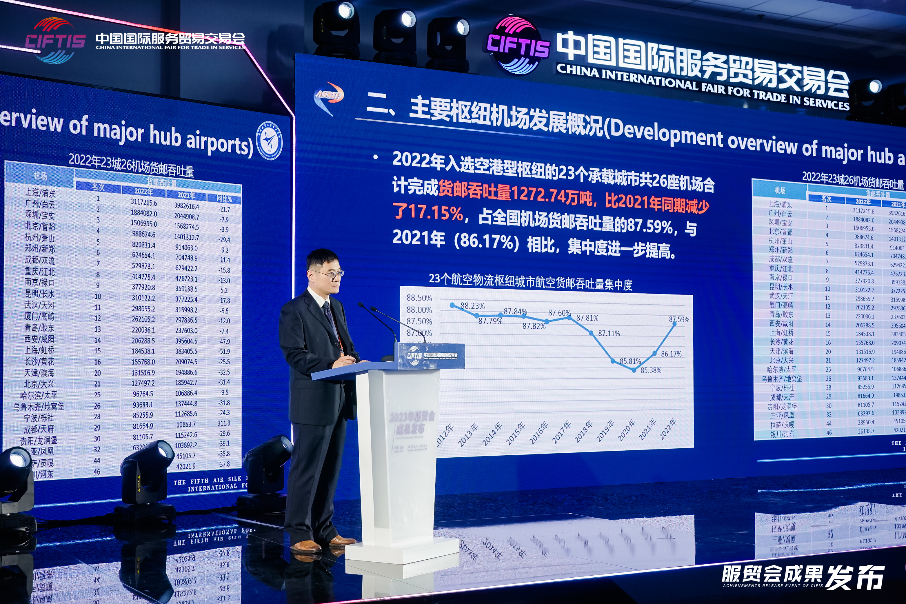 作为本届峰会的重要组成单元,航空经济发展河南省协同创新中心主任常广庶在大会上发布了《中国临空经济发展指数2023》。测定结果显示,上海浦东临空经济区、北京首都机场临空经济示范区、广州临空经济示范区、深圳临空经济区、成都临空经济示范区、郑州航空港经济综合实验区位列综合指数前六位,也是综合得分高于70分的临空经济区。