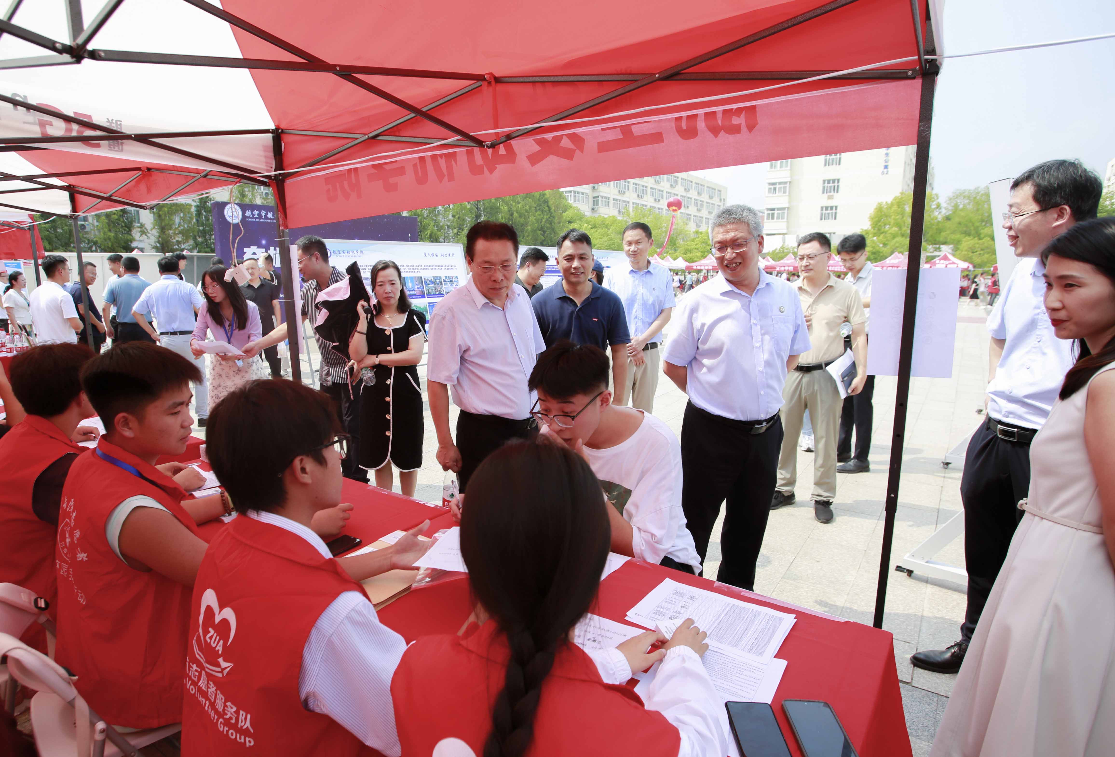 在中心广场新生报到点,校领导细致走访了各学院迎新报到点,向现场接待新生的学院负责人、辅导员、志愿者详细询问新生报到流程、迎新工作进展、迎新活动开展等情况,并听取现场工作人员汇报“迎新大礼包”配备、“绿色通道”申请和各专业报到人数等情况。刘代军对迎新所做的细致周到的服务和准备工作给予了充分肯定,与前来报到的新生及新生家长亲切交谈,询问来校路途、入校感受、对学校的期许。在特色迎新区域,刘代军还和部分等候的新生合影留念。