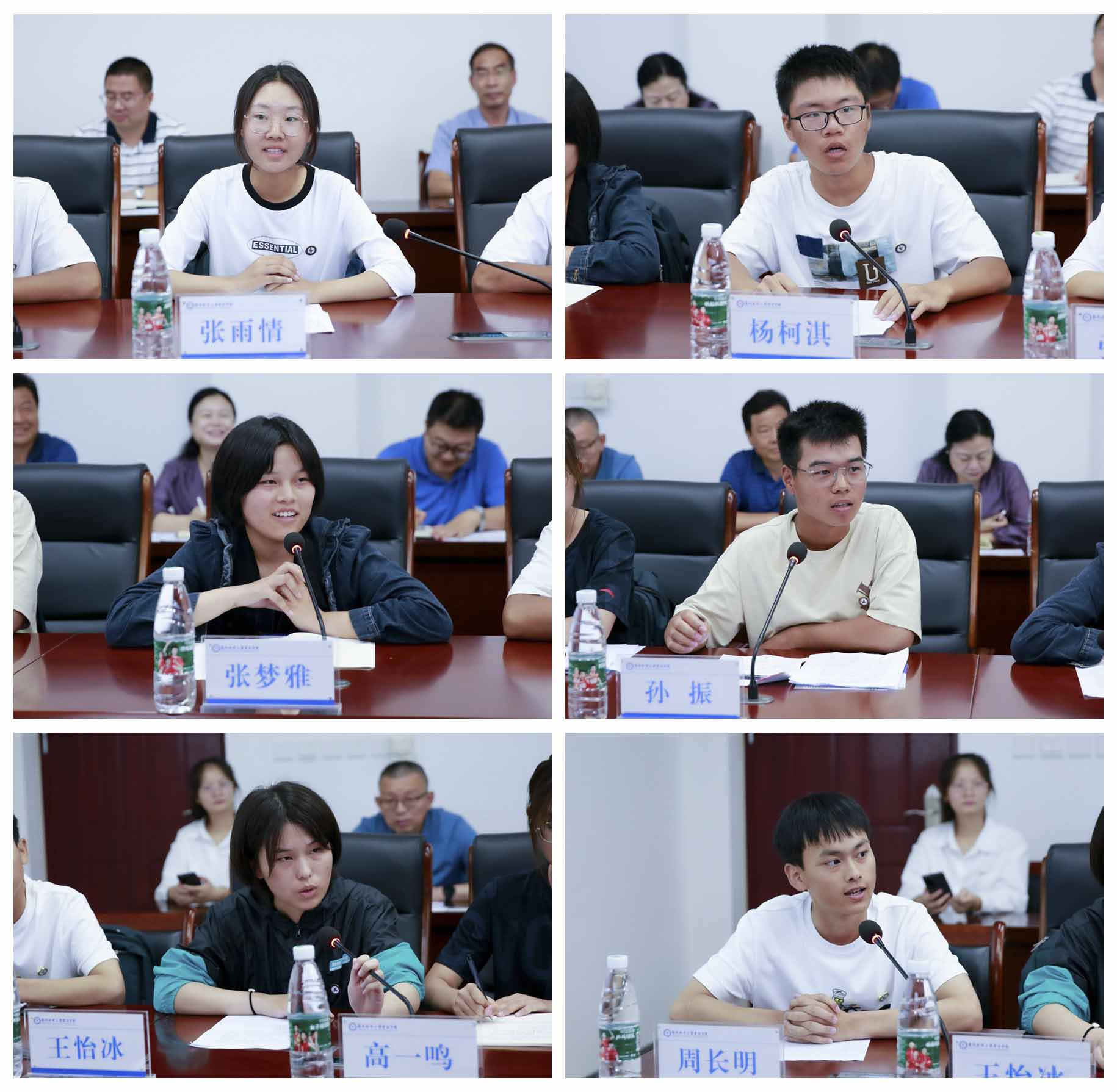 座谈会上,2023级新生畅谈入校以来的切身感受、对大学生活的向往和发展规划,并提出新生普遍关注的生活、学习、成长、职业发展等问题。校领导、相关部门和学院负责人与新生进行深入交流,针对提出的问题与建议,从优化办学条件、强化就业创业指导、规范学生日常管理、发挥团学工作作用、推进教育教学改革等方面做出详细解答。