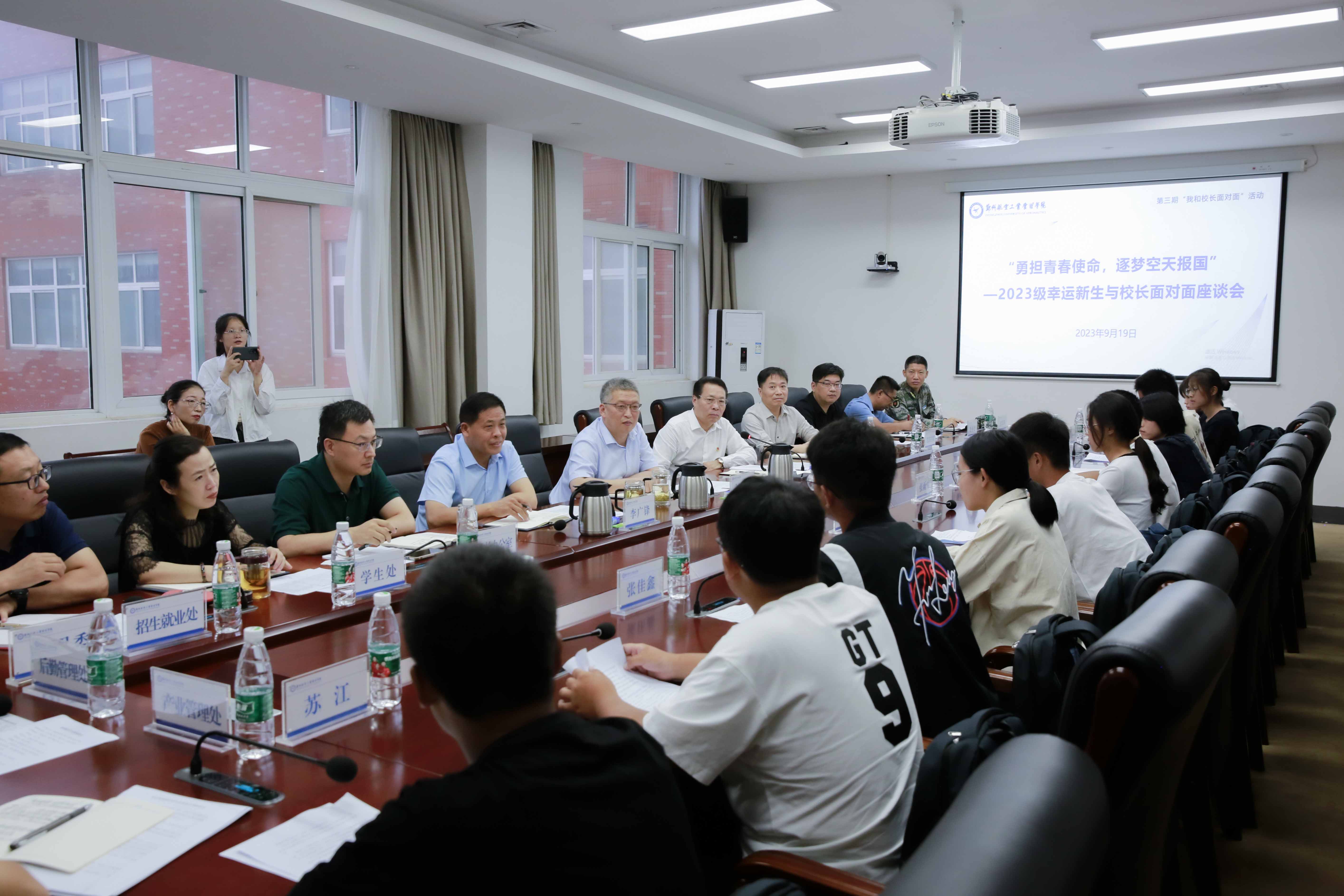 9月19日,我校举办“勇担青春使命,逐梦空天报国”——2023级幸运新生与校长面对面座谈会。校党委书记、校长刘代军,副校长李广锋出席座谈会。会议由副校长王继东主持。