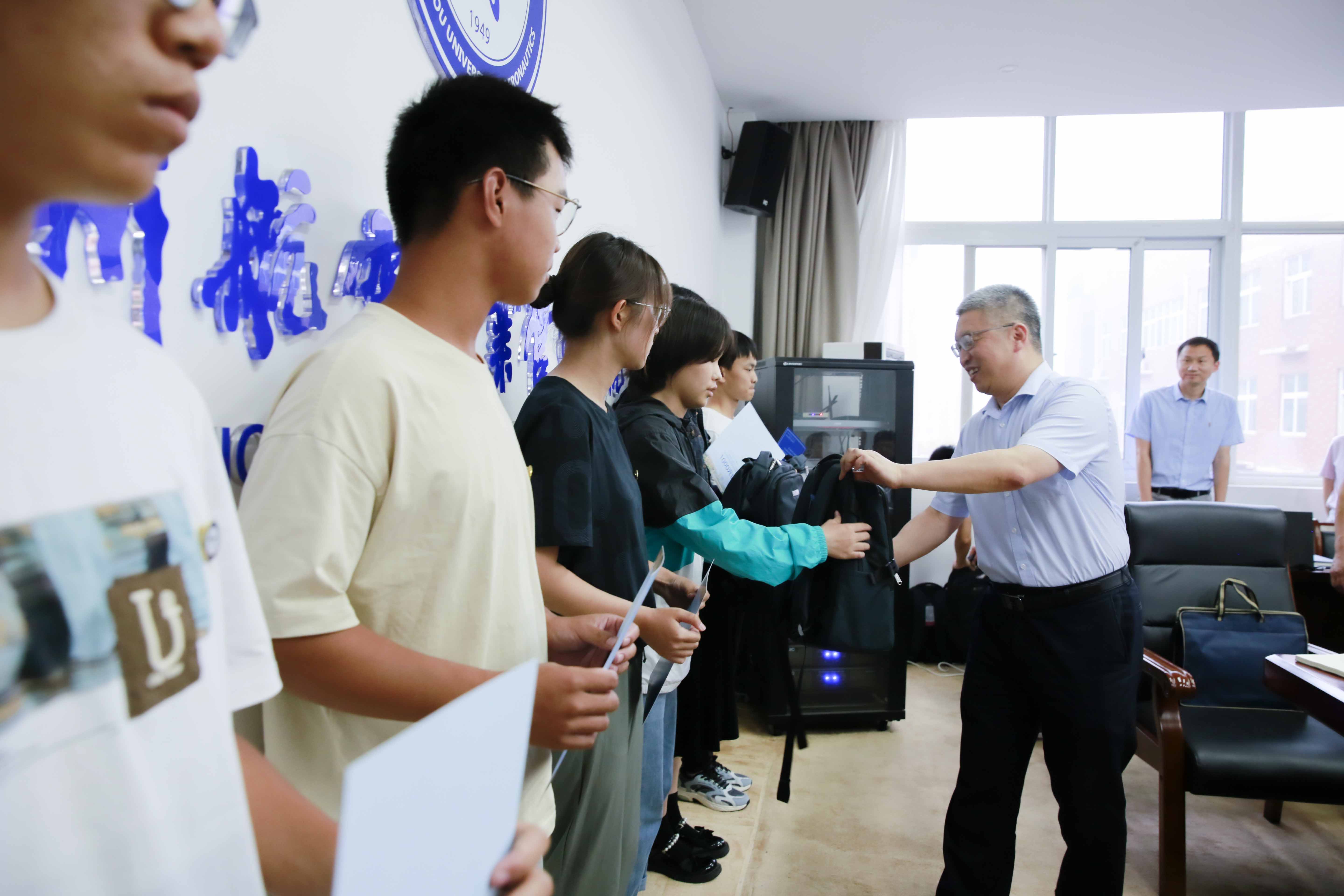 在认真听取新生发言后,刘代军深情寄语新生:一要有明确的规划。科学树立发展目标,做好人生规划,始终坚持学习,始终追求进步,本着初心,朝着目标,专心致志地干事创业,走好每一段人生道路。二要有努力地行动。从每一件小事做起,上好每一堂课,写好每一篇论文,做好每一次实验,课余时间多去图书馆坐坐,踏踏实实做,认认真真学,既仰望星空,又脚踏实地,在积极实践中求真学问、练真本领、铸大格局。三要有包容的心态。以包容、开放的心态对待世界万物,积极适应新环境,融入大学新生活,勇于自我改变,不断提高面对挫折、独立生活、适应社会的能力。四要有良好的习惯。要与优秀为伴,以先进为榜样,见贤思齐;要珍惜大学生活,加强自我管理,不要沉迷网络;要修养高尚品德、树立坚定意志、锻造健康体魄,度过充实、有意义的大学时光。五要有出彩的人生。追寻梦想的道路上,要坚守初心,抵御诱惑,才能铸就无悔人生。他希望,同学们锚定目标,坚定信心,不负光阴,持之以恒地在宁静中笃学、在砥砺中前行,享受学习的快乐,感受成长的真谛,在最美好的年华,把青春梦融入中国梦,用奋斗铸就精彩人生。