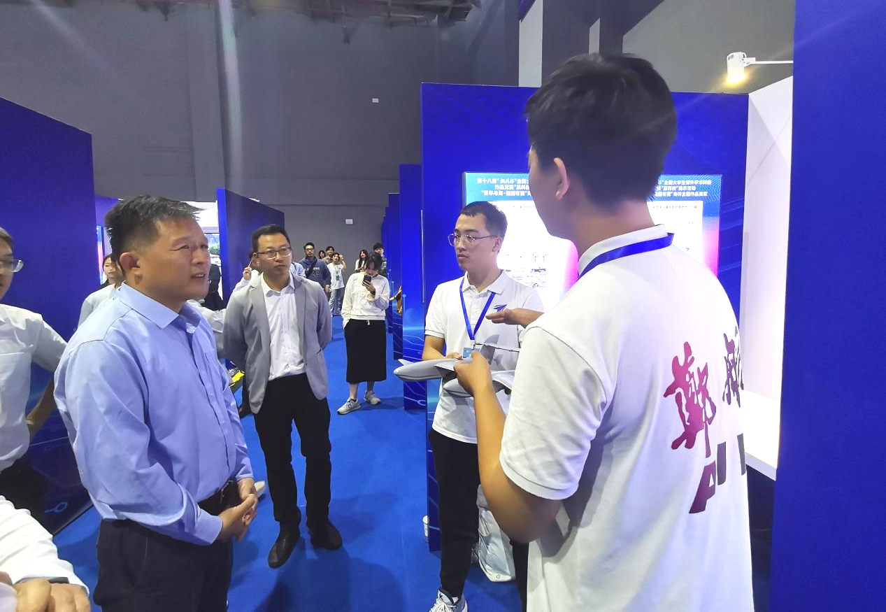 活动举行期间,共青团中央青年发展部部长黄大伟等来到我校项目展台参观指导,就项目国际研究情况、未来应用前景等展开深入交流,并给予高度评价。