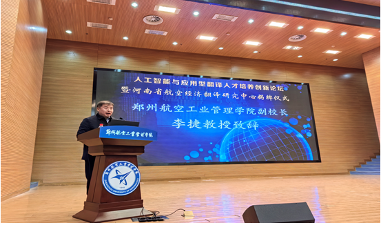李捷在致辞中,介绍学校整体概况、外国语学院发展现状、对外交流合作成果和筹建高水平航空航天大学总体情况。李捷指出,河南省航空经济翻译研究中心的成立,是河南省委外办对我校学科平台与专业资源的肯定,是对我校航空经济与翻译研究优势的认可。在河南省大力推动航空经济发展、加强郑州-卢森堡“空中丝绸之路”建设的时代背景下,希望我校外国语学院以此为契机,认真贯彻落实省委外办指示精神和工作要求,尽全力做好河南省航空经济翻译研究工作,与省委外办通力合作,推动中心成为河南省航空经济相关领域翻译实践与研究的重要基地,服务河南省航空经济的高质量发展,为国家的“一带一路”建设贡献河南力量。